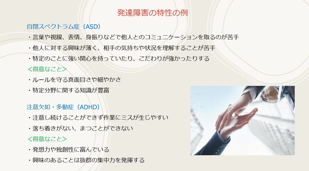 発達障害のある社員と働く際のストレスは、本人の能力ではなく「特性と業務のミスマッチ」によって生じることが多くあります。発達障害には、注意の偏り、感覚過敏、コミュニケーションの苦手さなど、さまざまな特性があります。これらは個人差が大きく、同じ対応がすべてのケースに当てはまるわけではありません。そのため、特性を理解せずに一般的な指導を行うと、改善が見られないまま職場の負担だけが増えることがあります。